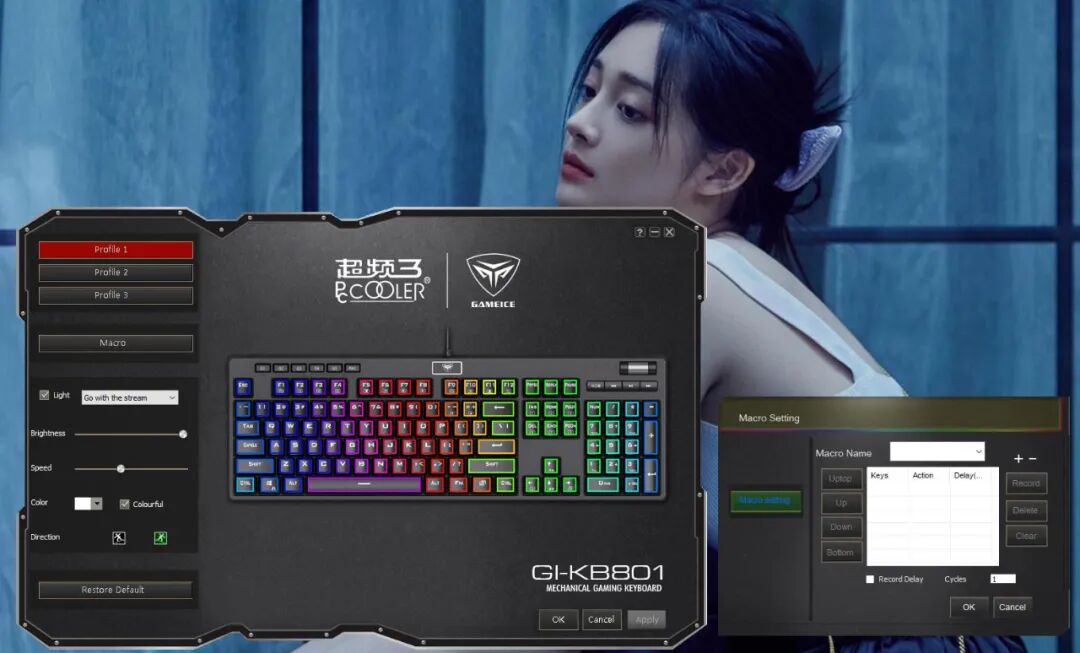 驱动:定位入门的机械键盘,居然还带驱动,除了灯效管理,懂行的玩家还可以根据自己实际情况自定义按键活进行游戏宏录制。