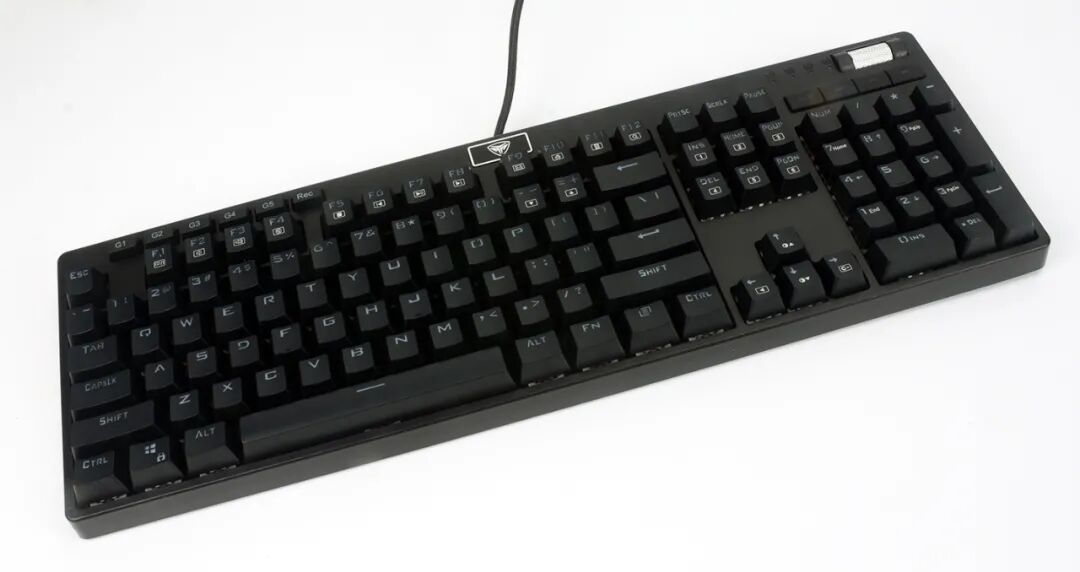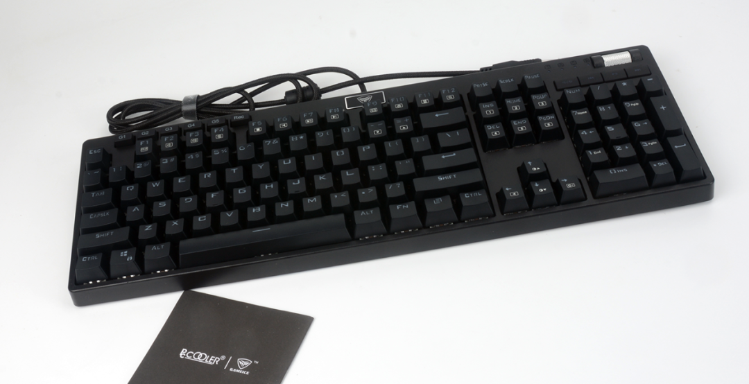细节:GI801黑曼巴为104键机械键盘,中间位置有一个超频三最新的GAMIECE LOGO(无RGB),整体相对比较低调。