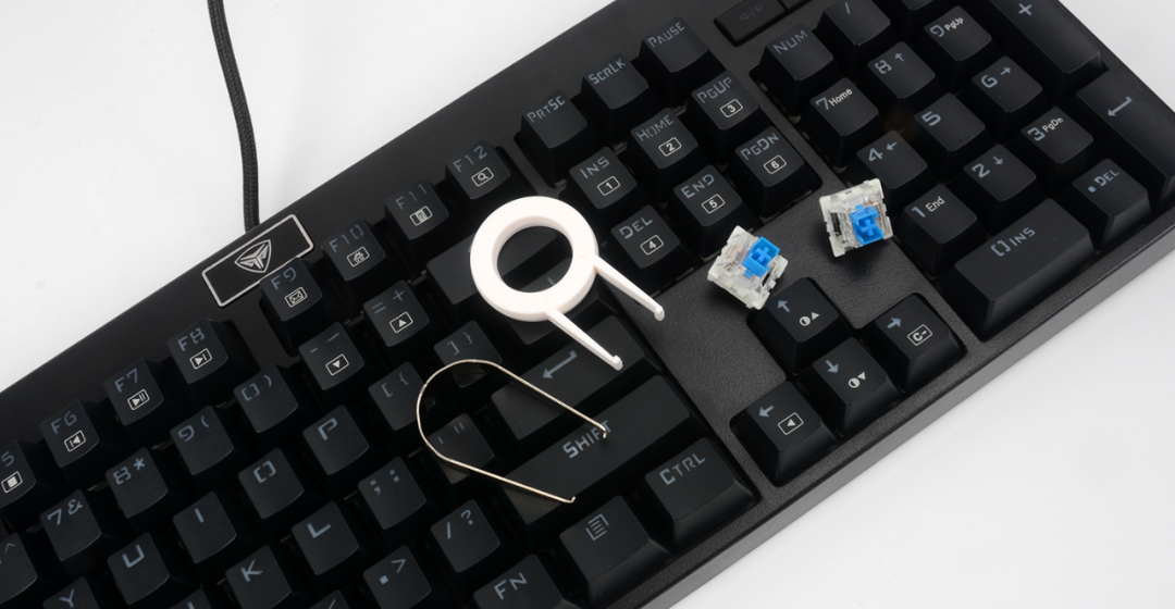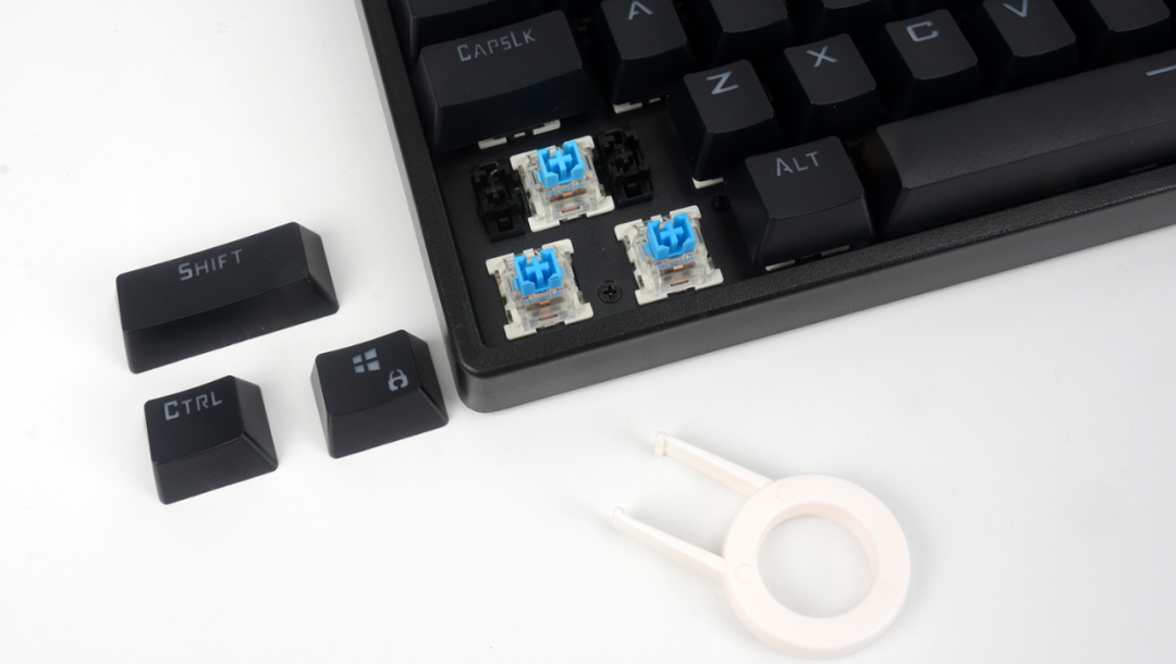 不过有额外附赠了拔键器和拔轴器,以及两个可替换轴体。当然,并不建议,非专业玩家随意拔插轴体。